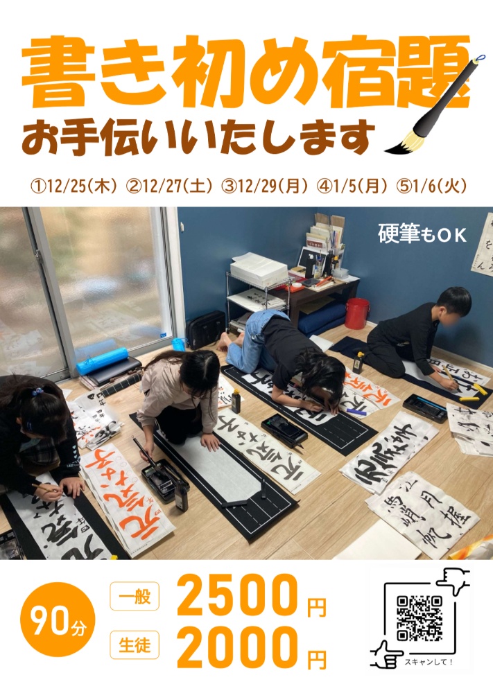 日本習字の毎月の課題以外にも、学校の書写の授業を先取りするお稽古もいたします。特に年末年始は、冬休みの書初め課題に力を入れて指導します。